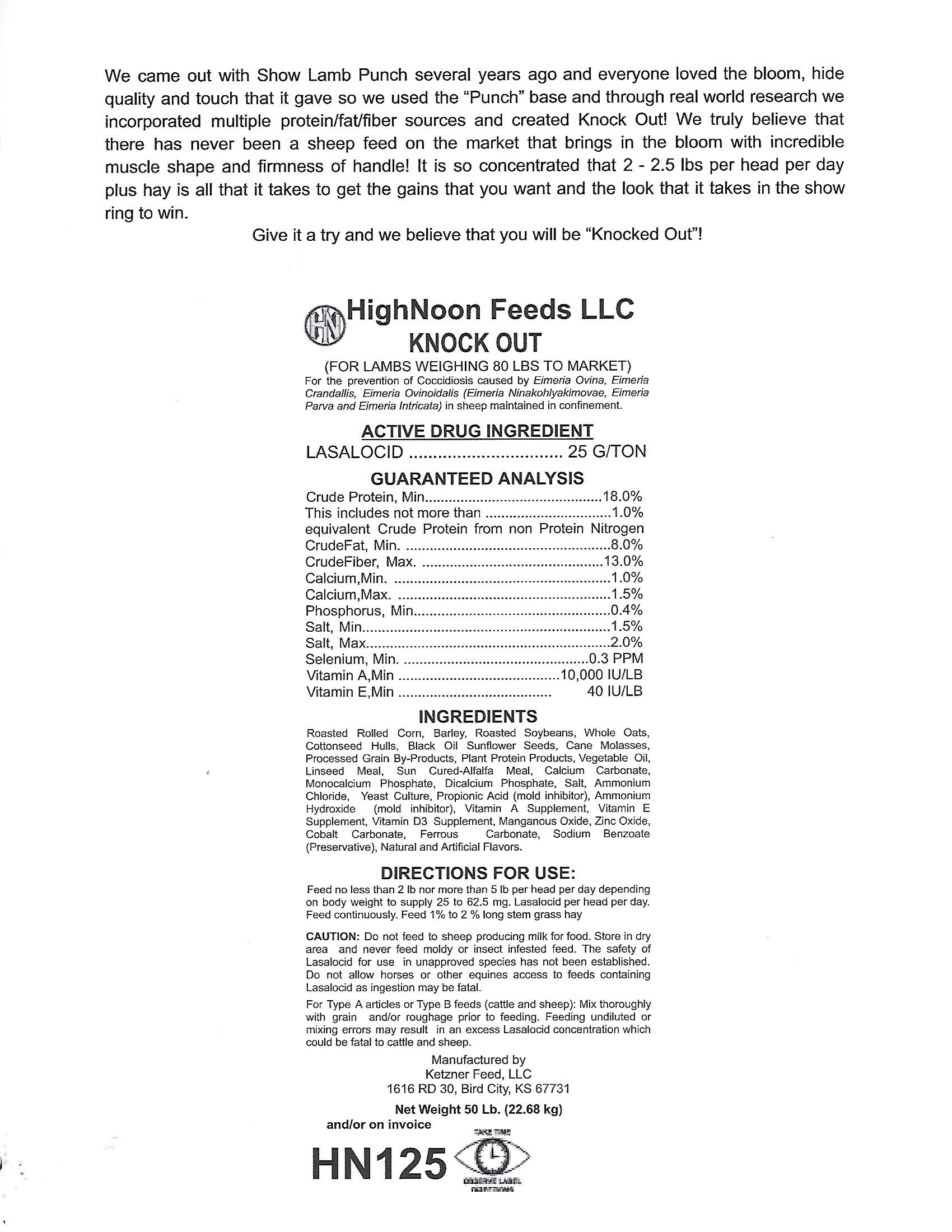 Show Goat Feeds Total Impact - Goat Mineral (Eastern Division Only) Sheep/Goat "Extra Fill" Supplement Billy the Kid Starter (Replaces Perfect Start) (Eastern Division Only) Cactus Jacks Textured Starter SunDance Grower (Replaces Activator Developer) (Eastern Division Only) Silver Bullet Textured Grower-Finisher ShootOut Finisher (Replaces Grand Slam) (Eastern Division Only) Nanny Vittles (Eastern Division Only) 34% Goat Supplement (Eastern Division Only) All High Noon Goat Feeds are currently available in the East through Kalmbach Feeds and their dealer network!